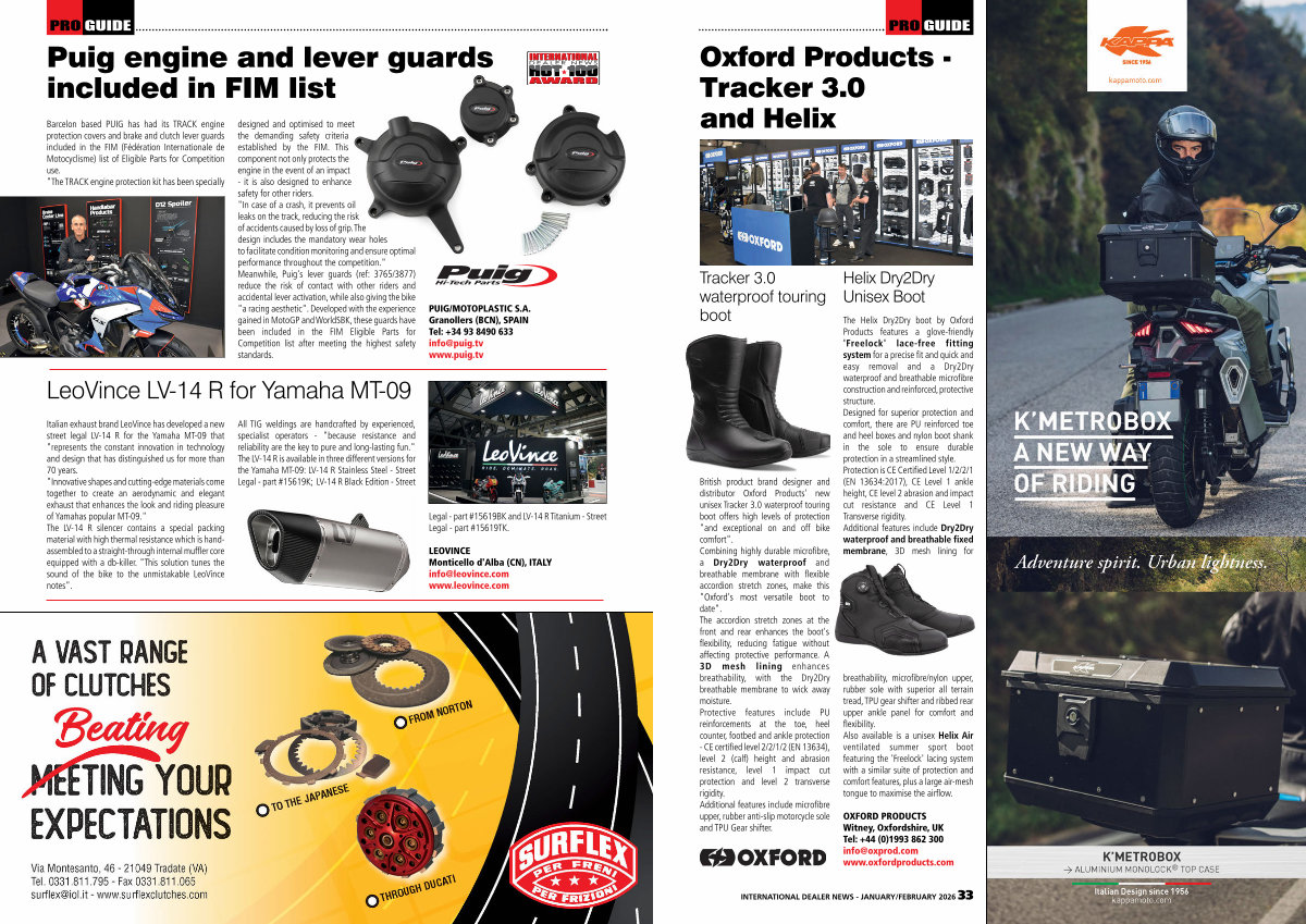Barcelon based PUIG has had its TRACK engine protection covers and brake and clutch lever guards included in the FIM( Fédération Internationale de Motocyclisme) list of Eligible Parts for Competition use. " The TRACK engine protection kit has been specially designed and optimised to meet the demanding safety criteria established by the FIM. This component not only protects the engine in the event of an impact- it is also designed to enhance safety for other riders. " In case of a crash, it prevents oil leaks on the track, reducing the risk of accidents caused by loss of grip. The design includes the mandatory wear holes to facilitate condition monitoring and ensure optimal performance throughout the competition." Meanwhile, Puig ' s lever guards( ref: 3765 / 3877) reduce the risk of contact with other riders and accidental lever activation, while also giving the bike " a racing aesthetic ". Developed with the experience gained in MotoGP and WorldSBK, these guards have been included in the FIM Eligible Parts for Competition list after meeting the highest safety standards.