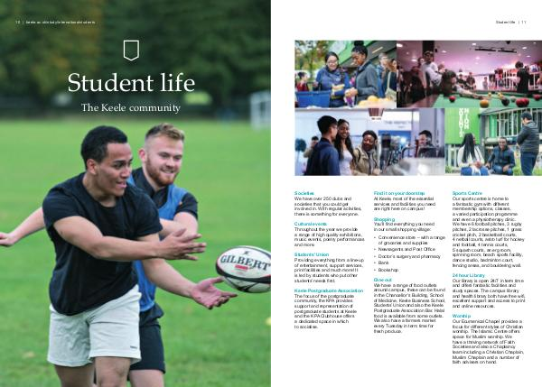 10 | keele.ac.uk/study/internationalstudents Student life The Keele community