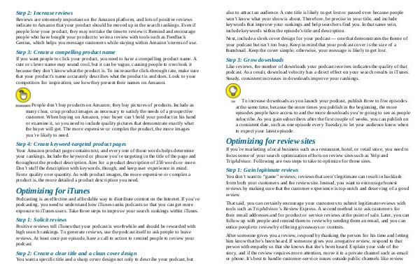 exposure to iTunes users. Take three steps to improve your search rankings within iTunes.
