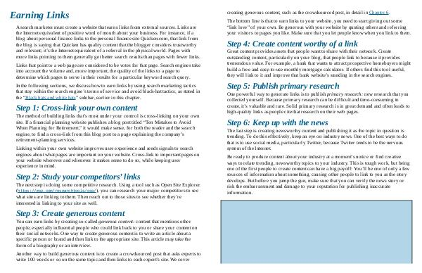 In the following sections, we discuss how to earn links by using search marketing tactics that stay within the search engine’ s terms of service and avoid black-hat tactics, as stated in the“ Black hats and white hats” sidebar, earlier in this chapter.