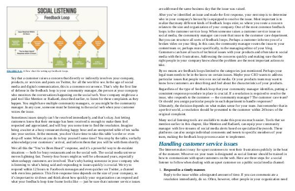 Say that a customer raises a concern that directly or indirectly involves your company, products, or services and posts on Twitter, for all the world to see. In the age of social media and digital communication, this is a common occurrence. That’ s why the first line of defense in the feedback loop is your community manager, the person at your company who monitors the conversations happening on the social web. Your company might use a paid tool like Mention or Radian6, described earlier, to listen for these complaints as they happen. You might have multiple community managers, or you might be the community manager. In any case, someone must be listening to the social web when your customer voices the issue.