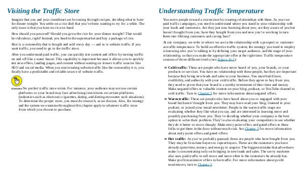 At our company, we refer to where we are in the relationship with a prospect or customer as traffic temperature. To build an effective traffic system, the strategy you need to employ is knowing who you’ re talking to by defining your target audience, and the stage of your relationship, so that you make the appropriate offer at the right time. Traffic temperature consists of three different levels( see Figure 10-1):
