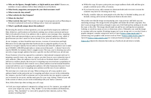 Figure 10-3 depicts the elements that make up a Facebook ad and what to include.