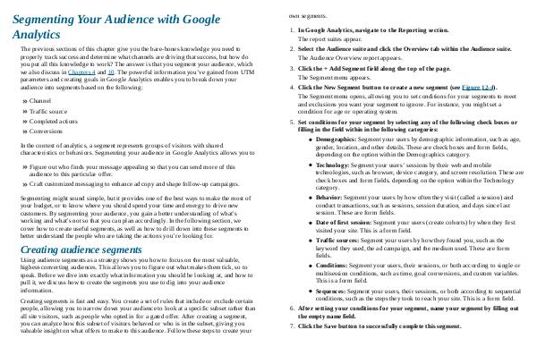 characteristics or behaviors. Segmenting your audience in Google Analytics allows you to