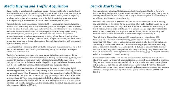 Successful traffic acquisition specialists understand the nuances of changing digital advertising platforms, so they constantly keep up to date on the latest advertising channels and terms of service. Data drives their decisions— data pertaining to budget, ROI( return on investment), CPC( cost per click) and PPC( pay per click)— and a media buyer keeps an eye on them all. There is a definite strategy behind purchasing traffic, and acquisition specialists are intimately familiar with the structure and implementation of ad campaigns that align with specific business goals. Traffic acquisition specialists can expect an annual salary range of $ 49,000 to $ 75,000.