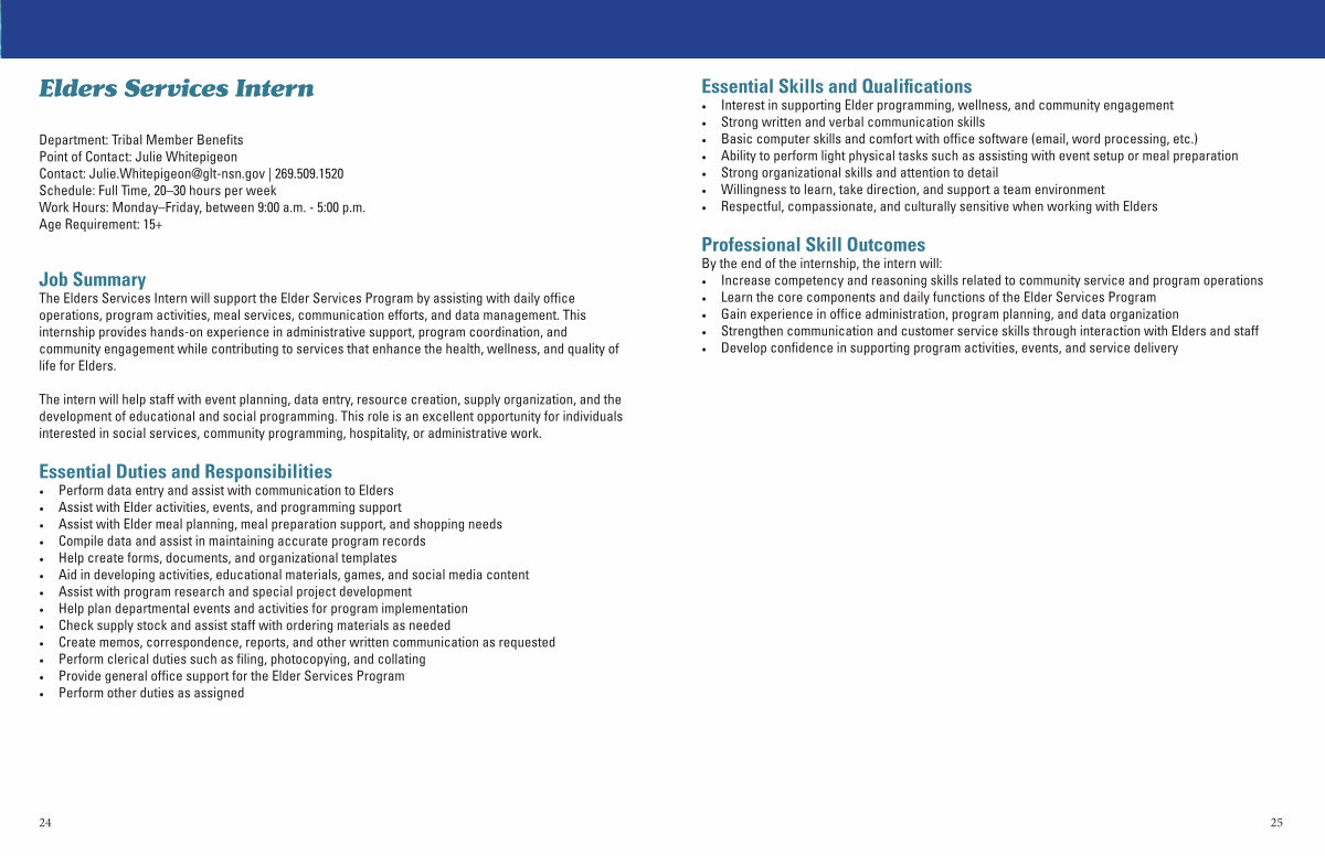 • Strengthen communication and customer service skills through interaction with Elders and staff