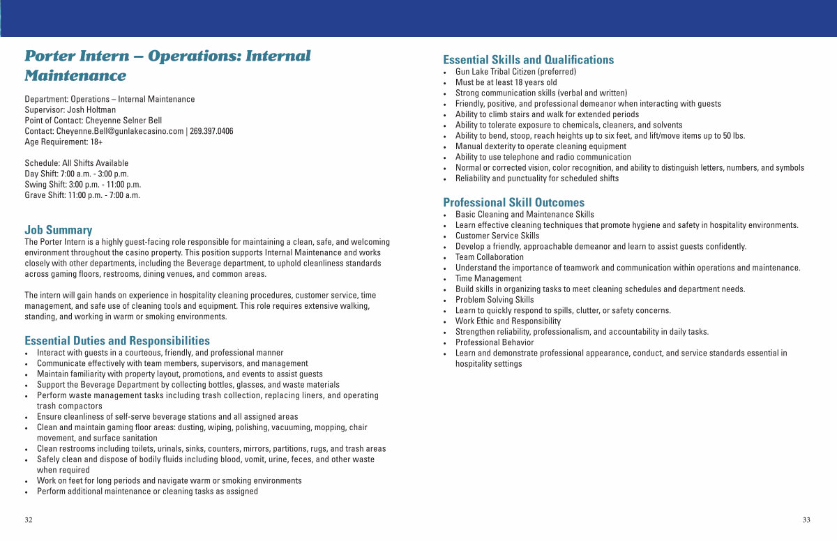 • Develop a friendly, approachable demeanor and learn to assist guests confidently.