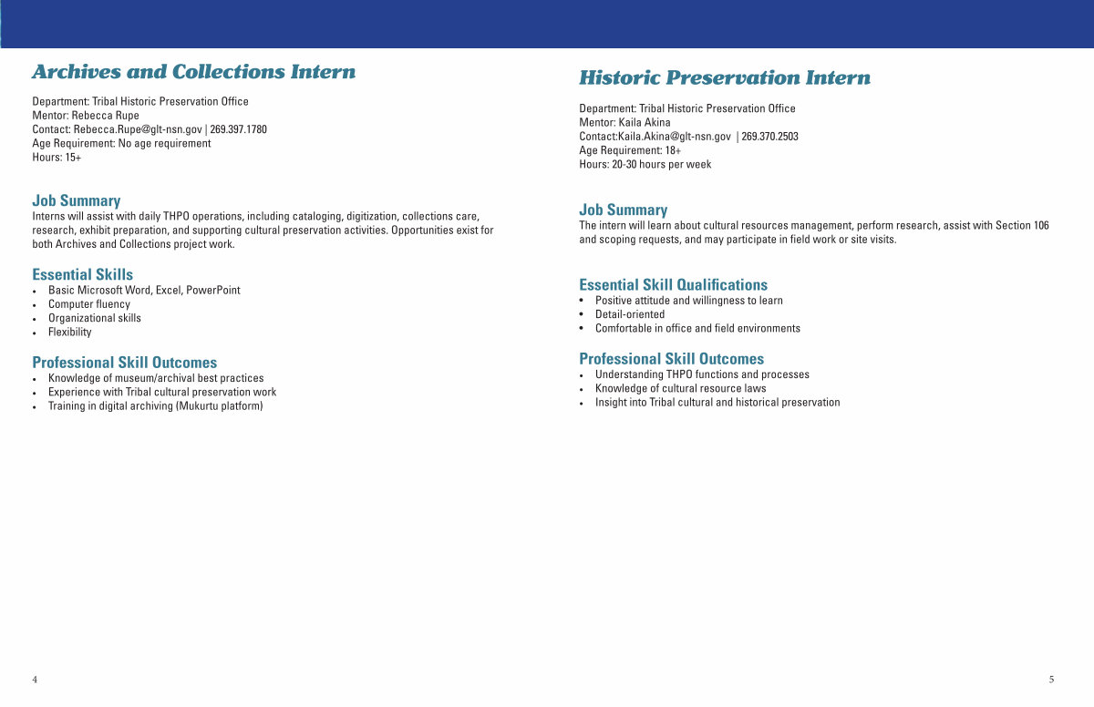 Department: Tribal Historic Preservation Office Mentor: Rebecca Rupe Contact: Rebecca. Rupe @ glt-nsn. gov | 269.397.1780 Age Requirement: No age requirement Hours: 15 +