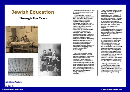 education. At this time Jewish education was already a struggling practice. It was hard to find a place Jews could learn about their heritage and the Torah. In fact many Jews made their way to Israel to better connect with their roots because they couldn’t where