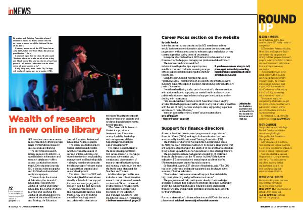 Additional support in this area includes: a new online interactive research map; increased research content in inTuition; the annual inTuition Research Supplement; and bursaries to support SET members on the Education and Training Foundation’ s( ETF) Practitioner Research Programme.