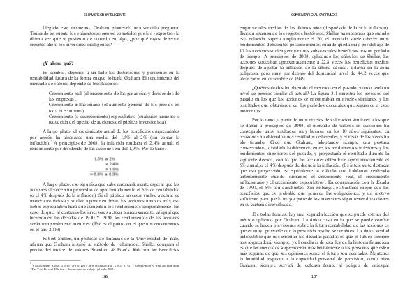 empresariales medios de los últimos años( después de deducir la inflación). Tras un examen de los registros históricos, Shiller ha mostrado que cuando esta relación supera ampliamente el 20, el mercado suele ofrecer unos rendimientos deficientes posteriormente; cuando queda muy por debajo de 10 las acciones suelen generar unas substanciales beneficios tras un período de tiempo. A principios de 2003, aplicando los cálculos de Shiller, las acciones cotizaban aproximadamente a 22,8 veces los beneficios medios después de ajustar la inflación de la última década, todavía en la zona peligrosa, pero muy por debajo del demencial nivel de 44,2 veces que alcanzaron en diciembre de 1999.