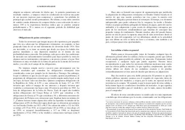 Podría parecer desaconsejable tratar de formular cualquier tipo de afirmación general sobre las salidas a bolsa en conjunto, puesto que cubren la más amplia gama posible de calidad y de atracción. Ciertamente, habrá excepciones a cualquier regla que pueda sugerirse. Nuestra única recomendación es que todos los inversores deberían mostrarse muy cautos ante las ofertas públicas iniciales, lo que significa, simplemente, que tales ofertas deben ser objeto de un cuidadoso examen y de pruebas extraordinariamente severas antes de decidir que interesa su adquisición.