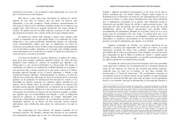 A la hora de abordar las acciones ordinarias, el analista de valores, hasta hace poco tiempo, raramente aplicaba criterios de valor tan bien definidos como estaban los criterios de seguridad que aplicaba a las obligaciones y a las acciones preferentes. La mayor parte del tiempo se contentaba con elaborar un resumen del resultado obtenido en el pasado, y una previsión más o menos general de lo que podía ocurrir en el futuro, haciendo especial hincapié en los 12 meses siguientes, y llegaba a una conclusión bastante arbitraria. Tradicionalmente el analista, a la hora de elaborar esta conclusión solía mirar de reojo la cotización de la acción que aparecía en las pantallas de información del mercado de valores; en la actualidad en muchas ocasiones los analistas siguen actuando de esa manera. En los últimos años, no obstante, los analistas en ejercicio han prestado mucha atención al problema de la valoración de las acciones de empresas en crecimiento. Muchas de estas acciones se han vendido a unas cotizaciones tan elevadas en relación con los beneficios pasados y actuales que aquellos que las recomendaban han llegado a sentir la obligación especial de justificar su recomendación de compra elaborando unas previsiones relativamente específicas de los beneficios previstos que se adentraban bastante en el futuro. Se han invocado ciertas técnicas matemáticas muy sofisticadas para apoyar las valoraciones a las que se llegaba.