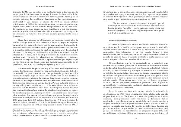 Comisión del Mercado de Valores, * en combinación con la disolución de la mayor parte de los sistemas de sociedades de cartera, la financiación de las concesionarias de servicios y suministros públicos ha sido buena, y no se conocen quiebras. Los problemas financieros de las concesionarias de electricidad y gas durante la década de 1930 se podían atribuir prácticamente al 100 % a los excesos financieros y a una mala gestión, que dejaron claras huellas en la estructura de capitalización de las sociedades. La realización de unas comprobaciones sencillas, a la vez que estrictas, sobre su seguridad debería haber advertido al inversor de que se alejase de las emisiones de valores cuyo servicio acabaría posteriormente siendo desatendido.