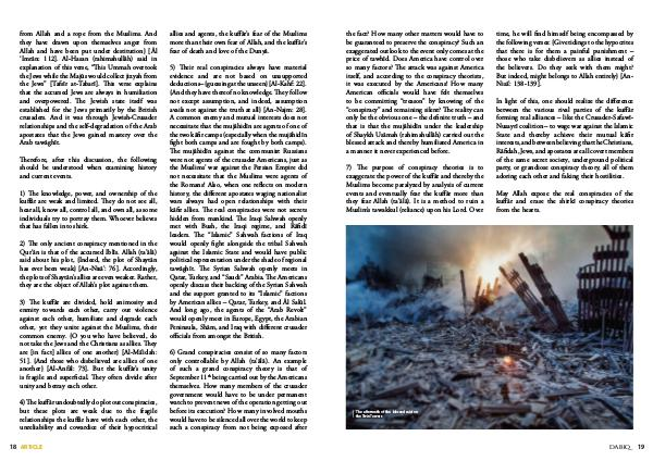 5) Their real conspiracies always have material evidence and are not based on unsupported deductions – { guessing at the unseen } [ Al-Kahf: 22 ]. { And they have thereof no knowledge. They follow not except assumption, and indeed, assumption avails not against the truth at all } [ An-Najm: 28 ]. A common enemy and mutual interests does not necessitate that the mujāhidīn are agents of one of the two kāfir camps( especially when the mujāhidīn fight both camps and are fought by both camps). The mujāhidīn against the communist Russians were not agents of the crusader Americans, just as the Muslims’ war against the Persian Empire did not necessitate that the Muslims were agents of the Romans! Also, when one reflects on modern history, the different apostates waging nationalist wars always had open relationships with their kāfir allies. The real conspiracies were not secrets hidden from mankind. The Iraqi Sahwah openly met with Bush, the Iraqi regime, and Rāfidī leaders. The“ Islamic” Sahwah factions of Iraq would openly fight alongside the tribal Sahwah against the Islamic State and would have public political representation under the shade of regional tawāghīt. The Syrian Sahwah openly meets in Qatar, Turkey, and“ Saudi” Arabia. The Americans openly discuss their backing of the Syrian Sahwah and the support granted to its“ Islamic” factions by American allies – Qatar, Turkey, and Āl Salūl. And long ago, the agents of the“ Arab Revolt” would openly meet in Europe, Egypt, the Arabian Peninsula, Shām, and Iraq with different crusader officials from amongst the British.
