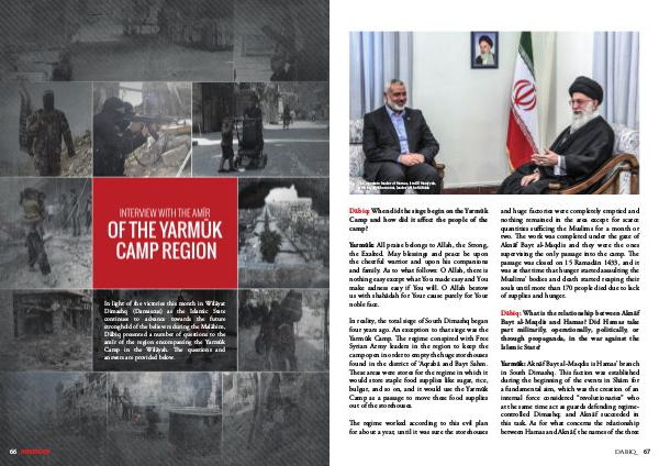 Yarmūk: Aknāf Bayt al-Maqdis is Hamas’ branch in South Dimashq. This faction was established during the beginning of the events in Shām for a fundamental aim, which was the creation of an internal force considered“ revolutionaries” who at the same time act as guards defending regimecontrolled Dimashq; and Aknāf succeeded in this task. As for what concerns the relationship between Hamas and Aknāf, the names of the three