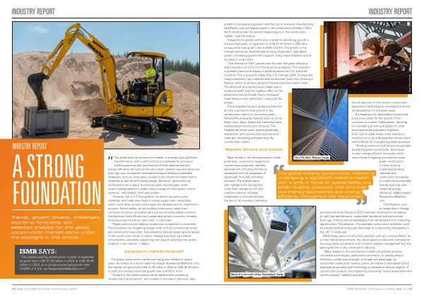 INDUSTRY REPORT growth in the elderly population and the rise in domestic manufacturing. Asia-Pacific was the largest region in the construction market in 2024. North America was the second-largest region in the construction market,” said the analyst.