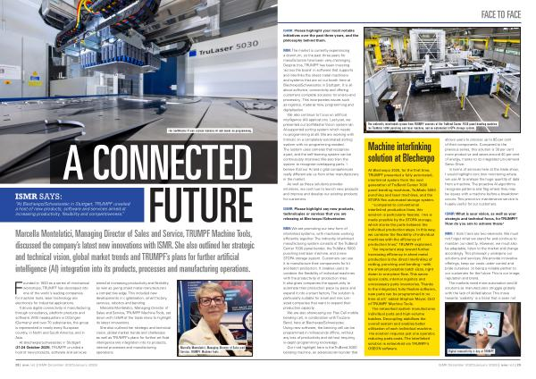 MM: We are promoting our new form of interlinked systems, with machines working efficiently together. The indirectly interlinked manufacturing system consists of the TruBend Center 7030 panel bender, the TruMatic 5000 punching and laser machine, and a new STOPA storage system. Customers can use it to manufacture their components for kit and batch production. It enables users to combine the flexibility of individual machines with the productivity of production lines. It also gives companies the opportunity to automate their production piece by piece and expand it into a smart factory. The solution is particularly suitable for small and mediumsized companies that want to expand their production capacity.