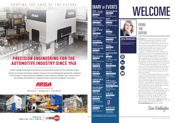 This issue places a special focus on stamping, with an alphabetical selection of the latest global stamping, tooling and pressing innovations on page 44. Advanced bipolar plate-forming technologies for fuel cell and hydrogen applications are discussed on page 42. Welding, AI and CAD / CAM also come under the spotlight in this issue.