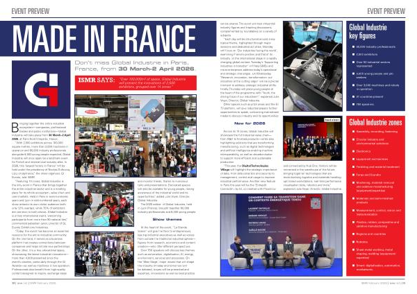 Across its 14 zones, Global Industrie will showcase the full industrial value chain— from R & D to finished products— while also highlighting solutions that are transforming manufacturing, such as digital technologies and artificial intelligence enabling machine interoperability, as well as decarbonisation to support more efficient and sustainable production.