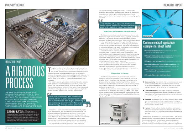 INDUSTRY REPORT documentation are high, creating a demanding environment for production technology and process planning. To enter the marketplace, medical devices must comply with pre-defined product lifecycle parameters intended to maximise patient safety and ensure high quality standards.