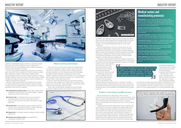 Orthopaedics: This includes reconstructive devices; spinal implants; arthroscopy; orthobiologicals; hip implants and knee replacements. This sector utilises manufacturing processes such as machining, casting, grinding, polishing, metal injection moulding and rapid manufacturing.