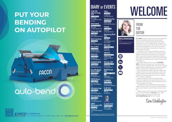 In the March issue of ISMR, we highlight a selection of trends and forecasts for the global medical device industry( page 20). As the pharmaceutical and medical industries evolve, the demand for precision-engineered components grows greater. On page 28, we review the economic growth rate, industry trends and forecasts in France for sheet metal manufacturers.