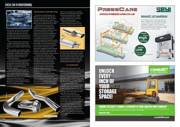 the need for most secondary processes. The parts can be as thin or as thick as the design demands, and it can have complex joints, threads and formations,” commented spinning and hydroforming specialist, Helander HQ + Forming in the U. S.