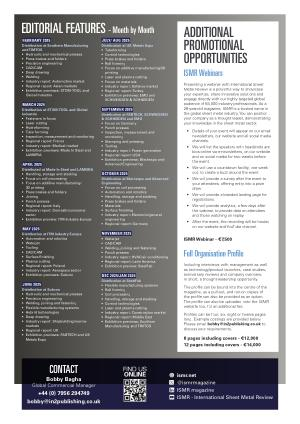 Presenting a webinar with International Sheet Metal Review is a powerful way to showcase your expertise, share innovative solutions and engage directly with our highly targeted global audience of 64,000 industry professionals. As a 26-year-old magazine, ISMR is a trusted name in the global sheet metal industry. You can position your company as a thought leader, demonstrating your knowledge in the sheet metal sector.