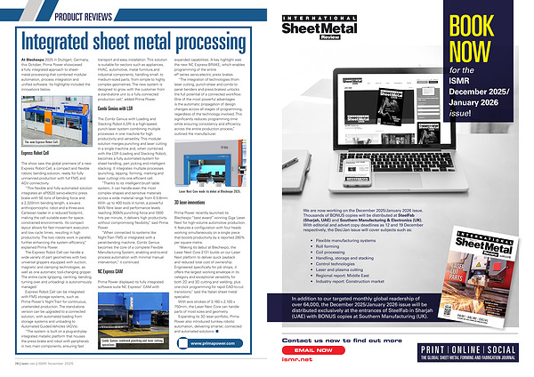 At Blechexpo 2025 in Stuttgart, Germany, this October, Prima Power showcased a fully integrated approach to sheetmetal processing that combined modular automation, process integration and unified software. Its highlights included the innovations below.