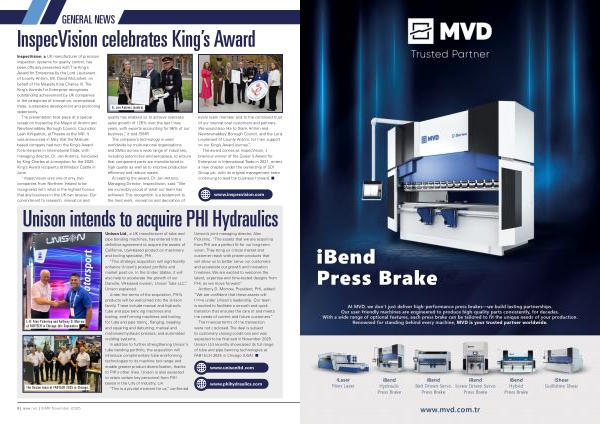 The award comes as InspecVision, a previous winner of the Queen’ s Award for Enterprise in International Trade in 2021, enters a new chapter under the ownership of SDI Group plc, with its original management team continuing to lead the business forward. n