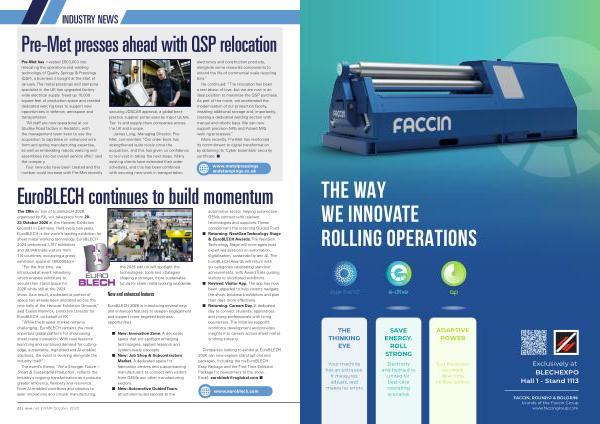“ While the broader market remains challenging, EuroBLECH remains the most important global platform for showcasing sheet metal innovation. With new features launching and continued demand for cuttingedge, sustainable, digitalised and AI-enabled solutions, the event is evolving alongside the industry itself.”