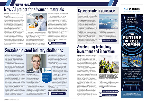 The event programme also addressed the needs of emerging industries such as electric mobility and hydrogen infrastructure. Professor Nora Leuning, RWTH Chair of Electrical Machines and Drives, presented new material concepts designed specifically for high-performance electric motors— materials that combine high mechanical strength with minimal magnetic losses. Other presentations highlighted the promise of machine learning in solving complex, multidimensional challenges such as optimising fine blanking processes for sheet metal with varying impurity levels.