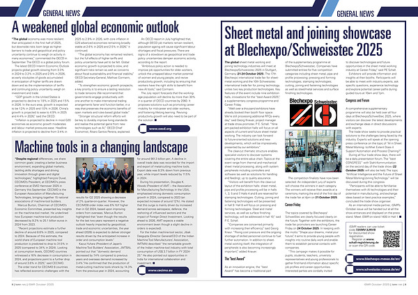 The global sheet metal working and joining technology industries will meet at Blechexpo / Schweisstec 2025 in Stuttgart, Germany( 21-24 October 2025). The 17th Blechexpo international trade fair for sheetmetal working and the 10th Schweisstec international trade fair for joining technology unites two key production technologies. Key features of the event include nine exhibition halls, innovations for the“ best Award 2025”, a supplementary congress programme and Career Friday.