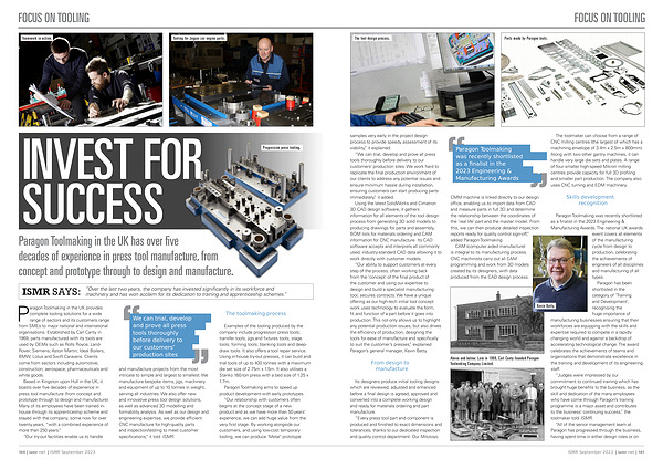 “ Judges were impressed by our commitment to continued training which has brought huge benefits to the business , as the skill and dedication of the many employees who have come through Paragon ’ s training programme is a major asset and contributes to the business ’ continuing success ,” the toolmaker told ISMR .