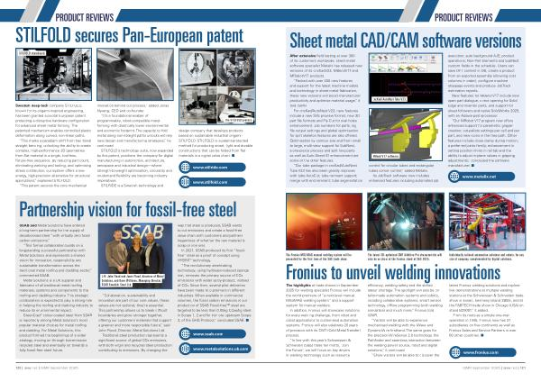 “ The revolutionary steelmaking technology, using hydrogen-reduced sponge iron, removes the primary source of CO₂ emissions with water as by-product, instead of CO₂. Since then, several pilot deliveries have been made to customers in different industries. When available in commercial volumes, the fossil carbon emissions in our production of SSAB Fossil-free™ steel are targeted to be less than 0.05kg CO₂e / kg steel in Scope 1, 2 and for iron ore upstream Scope 3, of the GHG Protocol,” concluded SSAB. n