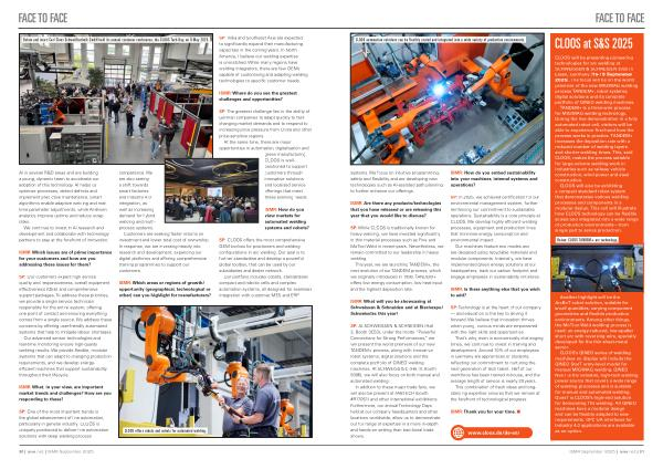 At the same time, there are major opportunities in automation, digitalisation and green manufacturing. CLOOS is wellpositioned to support customers through innovative solutions and localised service offerings that meet these evolving needs.