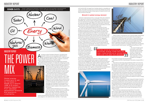 The expanding supply of lowemissions sources covered most of the increase in global electricity demand in 2024, added the report. The amount of new renewable power capacity installed worldwide rose to around 700 gigawatts, setting a new annual record for the 22nd consecutive year. Nuclear power capacity additions reached their fifthhighest level in the past three decades. As a result, 80 % of the increase in global electricity generation in 2024 was provided by renewable sources and nuclear, which together contributed 40 % of total generation for the first time. The supply of natural gas-fired generation also increased steadily to cover rising electricity demand.