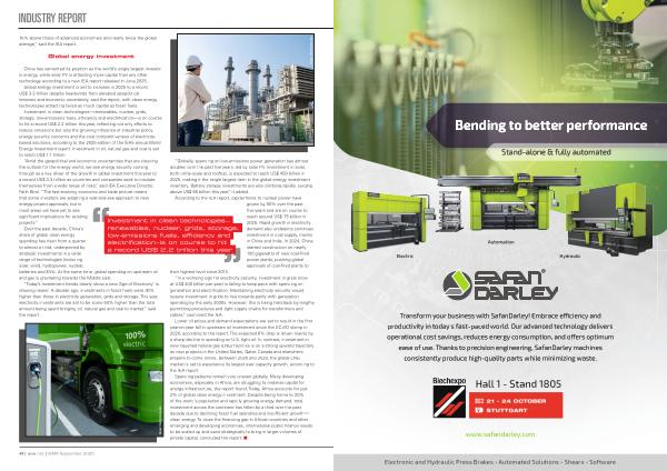 Investment in clean technologies— renewables, nuclear, grids, storage, low-emissions fuels, efficiency and electrification— is on course to hit a record US $ 2.2 trillion this year, reflecting not only efforts to reduce emissions but also the growing influence of industrial policy, energy security concerns and the cost competitiveness of electricitybased solutions, according to the 2025 edition of the IEA’ s annual World Energy Investment report. Investment in oil, natural gas and coal is set to reach US $ 1.1 trillion.