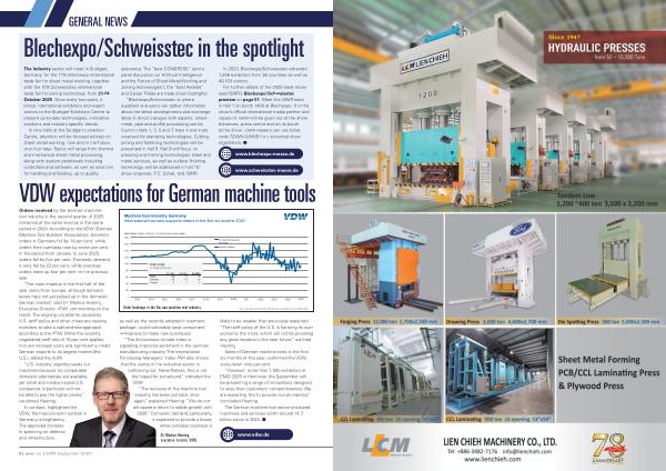 For further details of the 2025 trade show, read ISMR’ s Blechexpo / Schweisstec preview on page 51. Meet the ISMR team in Hall 1 on booth 1400 at Blechexpo. It is the show’ s official international media partner and copies of ISMR will be given out at the show entrances, press centre and on its booth at the show. ISMR readers can use ticket code 72XMV-3JNVB for discounted show registration. n