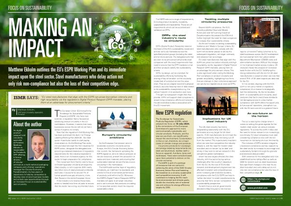 Matthew Ekholm outlines the EU’ s ESPR Working Plan and its immediate impact upon the steel sector. Steel manufacturers who delay action not only risk non-compliance but also the loss of their competitive edge.
