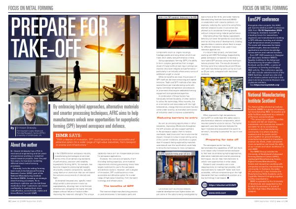 teams here at the AFRC and wider National Manufacturing Institute Scotland( NMIS) in collaboration with industry partners. For example, reducing the cycle time using finite element analysis to predict outcomes has allowed us to accelerate forming speeds without compromising material performance.