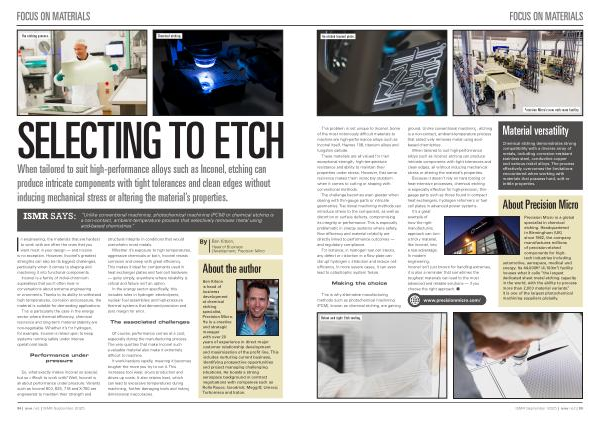 Ben Kitson is head of business development at chemical etching specialist, Precision Micro. He is a creative and strategic manager with over 20 years of experience in direct major customer relationship development and maximisation of the profit line. This includes nurturing current business, identifying prospective opportunities and project managing challenging situations. He boasts a strong aerospace background in contract negotiations with companies such as Rolls Royce; Goodrich; Meggitt; Umeco; Turbomeca and Eaton.