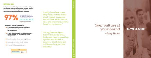 Spa buyers are constantly looking for new products for their retail space. ISPA helps make this process easy by delivering the newest products to their doorsteps in a perfectly packaged Reveal Box. This unique costeffective sampling opportunity is available three times a year.