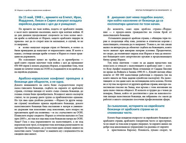 Тук нека вметнем — само за да дадем представа как поня-кога се отнасят с палестинците в арабския свят — когато Ясер Арафат подкрепи Ирак оглавяван от Саддам Хюсеин по време на Войната в Залива 1990-91 г ., Кувейт изгони общо повече от 300 000 палестинци работещи в страната ( но на които никога не бяха дадени кувейтски паспорти ). На палестинците се гле-даше като на потенциална пета колона . Почти не се чу глас на протест от другите арабски страни , или про-палестински гласове на Запад , във връзка с това изгонване на цяла палес-тинска общност . И колкото и трудно да е човек да повярва , Ливан , който от десетилетия е дом на няколкостотин хиляди палестински бежанци , им забранява със закон да работят в много специално посочени професионални сфери .
