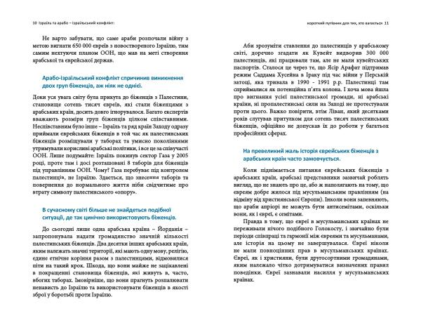 Доки уся увага світу була прикута до біженців з Палестини , становище сотень тисяч євреїв , які стали біженцями з арабських країн , досить довго ігнорувалося . Багато експертів вважають розміри груп біженців цілком співставними . Неспівставним було інше – Ізраїль та ряд країн Заходу одразу приймали єврейських біженців в той час як палестинських біженців розміщували у таборах та умисно поколіннями утримували корисливі арабські політики , і все це за співучасті ООН . Лише подумайте : Ізраїль покинув сектор Газа у 2005 році , проте там і досі розташовані 8 таборів для біженців під управлінням ООН . Чому ? Газа перебуває під контролем палестинців , не Ізраїлю . Здається , що знесення таборів та повернення до нормального життя ніби свідчитиме про втрату символу палестинського « опору ».