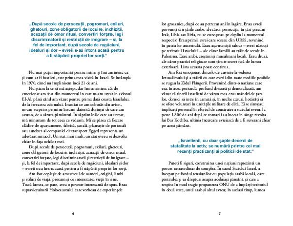 „ După secole de persecuții, pogromuri, exiluri, ghetouri, zone obligatorii de locuire, inchiziții, acuzații de omor ritual, convertiri forțate, legi discriminatorii și restricții de imigrare – și, la fel de important, după secole de rugăciuni, idealuri și dor – evreii s-au întors acasă pentru a fi stăpânii propriei lor sorți.“