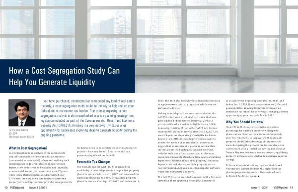 To learn more about cost segregation studies and whether you can benefit from this significant tax planning opportunity , contact Doeren Mayhew ’ s dedicated Tax Group today . ■