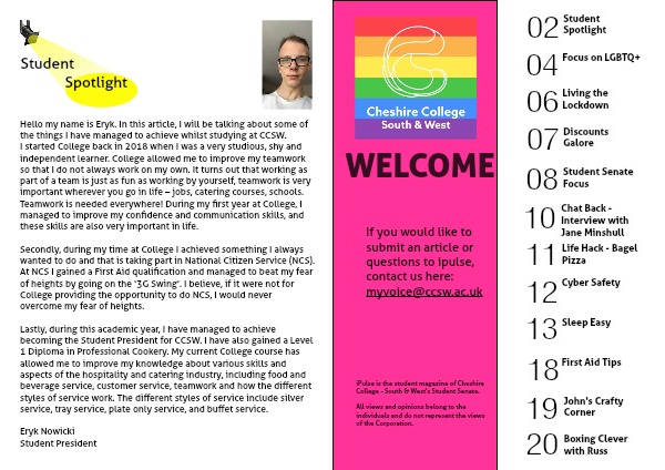 iPulse is the student magazine of Cheshire College - South & West's Student Senate.