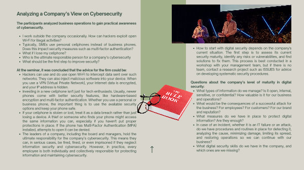 The participants analyzed business operations to gain practical awareness of cybersecurity.